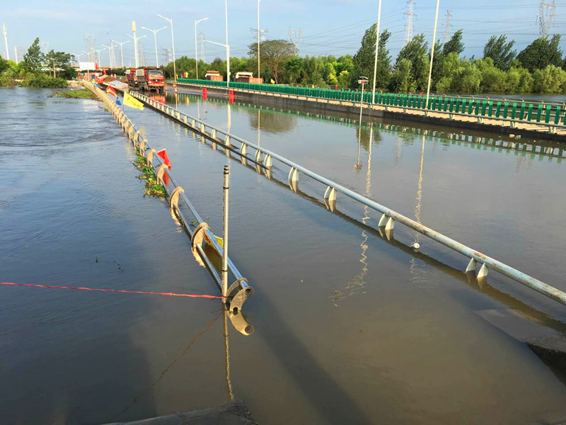 在水位持續(xù)上漲并已漫過(guò)橋面的情況下,一邊抓緊與交管部門(mén)溝通協(xié)商封路事宜,一邊組織現(xiàn)場(chǎng)人員進(jìn)行交通疏導(dǎo)。同時(shí),兄弟單位水務(wù)集團(tuán)、燃?xì)饧瘓F(tuán)也及時(shí)對(duì)小河橋現(xiàn)場(chǎng)水氣管網(wǎng)情況進(jìn)行了安全排查。22時(shí),交管部門(mén)對(duì)三環(huán)北(三金潭――諶家磯)實(shí)行交通封閉,現(xiàn)場(chǎng)立即調(diào)用2臺(tái)裝載機(jī)、3臺(tái)挖掘機(jī)、2臺(tái)吊車(chē)、2臺(tái)叉車(chē)開(kāi)始進(jìn)行封堤圍堰施工。由于準(zhǔn)備充分,經(jīng)過(guò)緊張組織施工,23時(shí)50分完成封堵和圍堰加固工作。