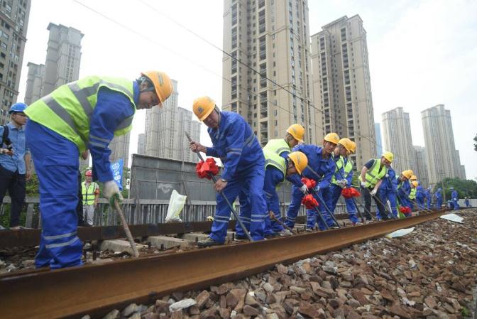 5月24日上午9時(shí),武九鐵路北環(huán)線三層樓鐵路立交橋鋼軌開始進(jìn)行切割拆除。